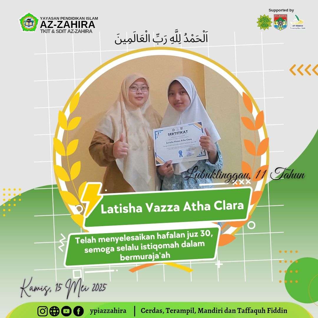 Telah menyelesaikan setoran hafalan juz 30